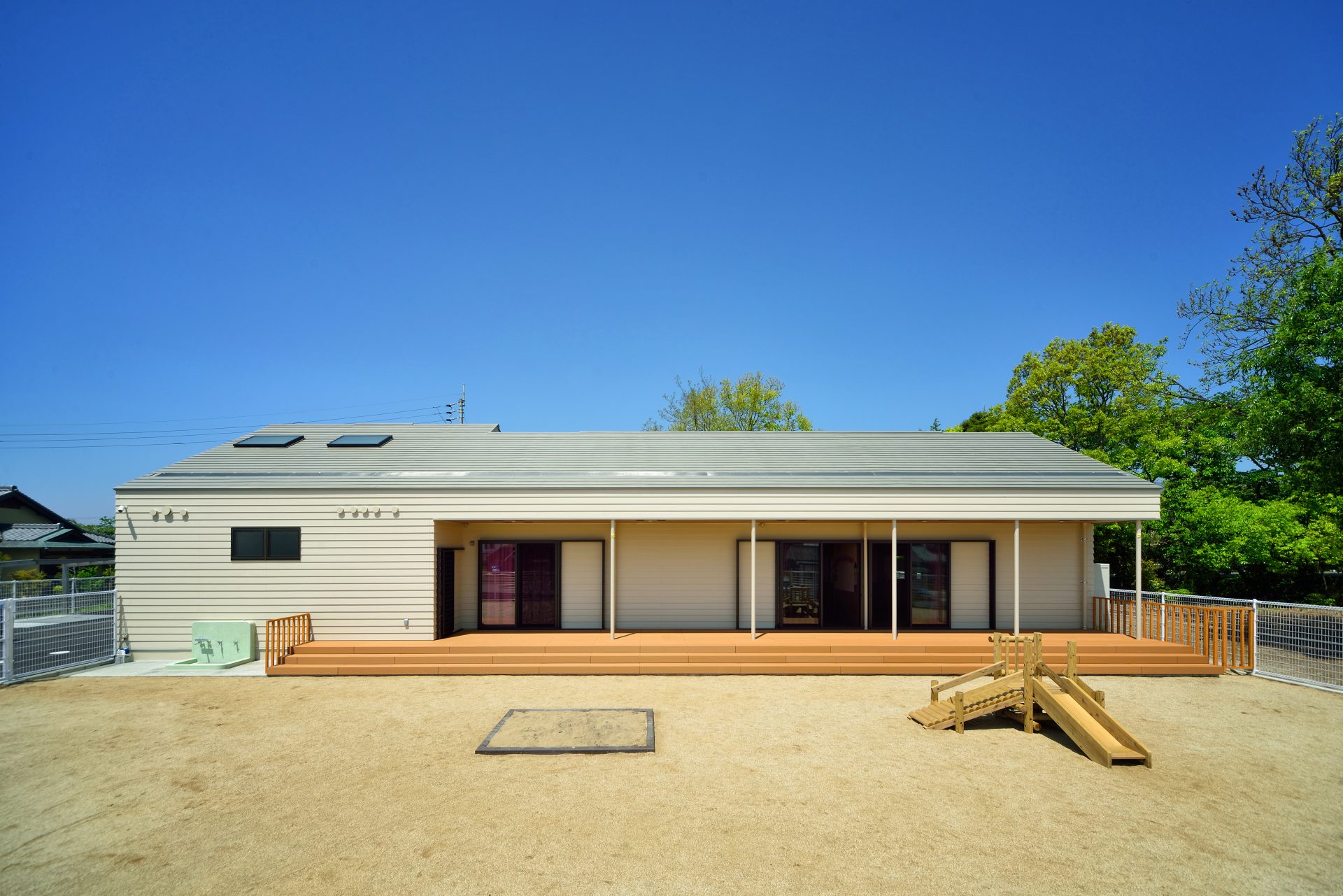 園庭へは耐久性、安全性に優れたウッドデッキを採用し、