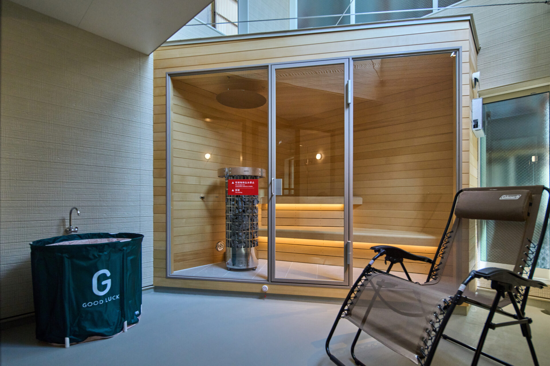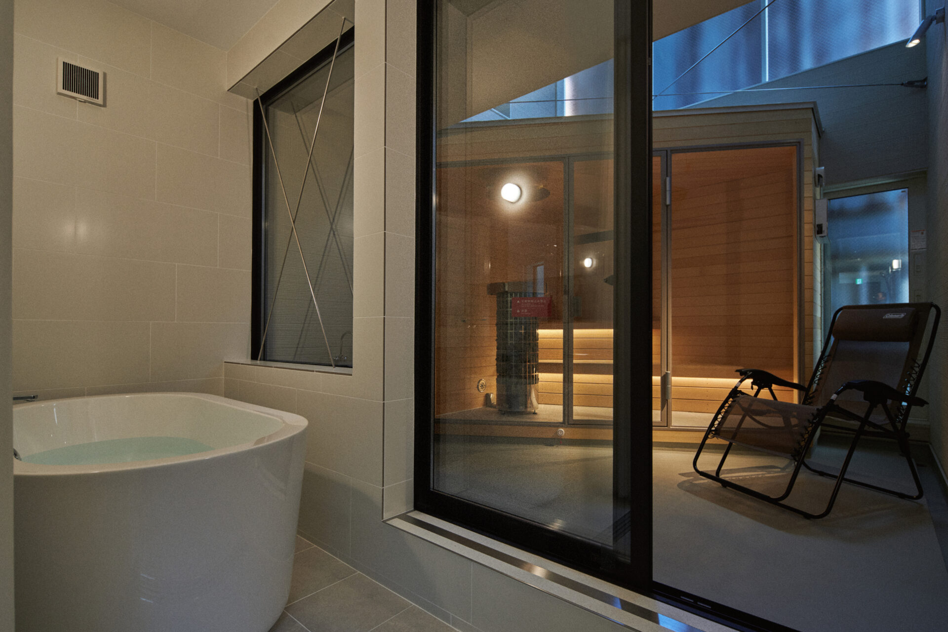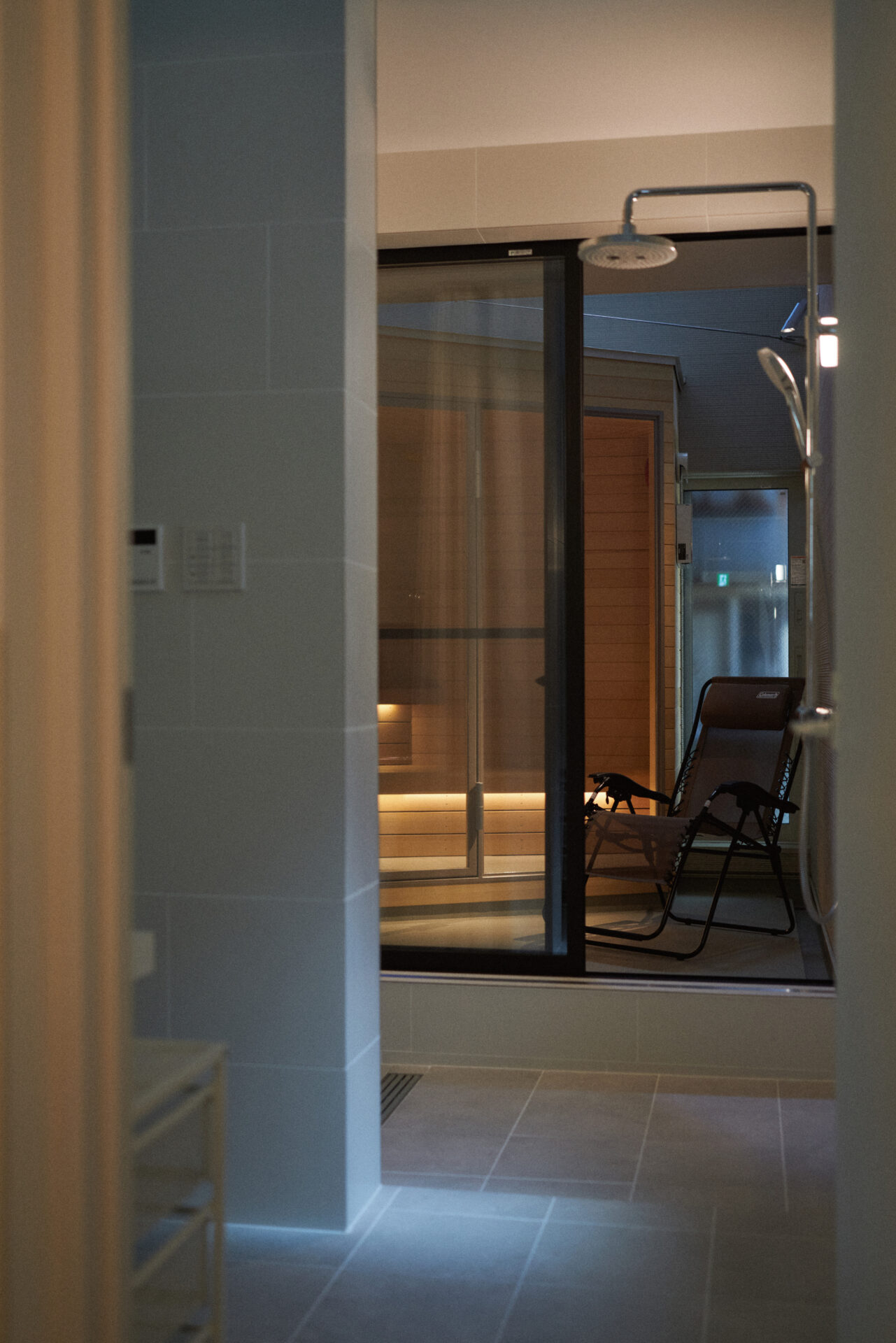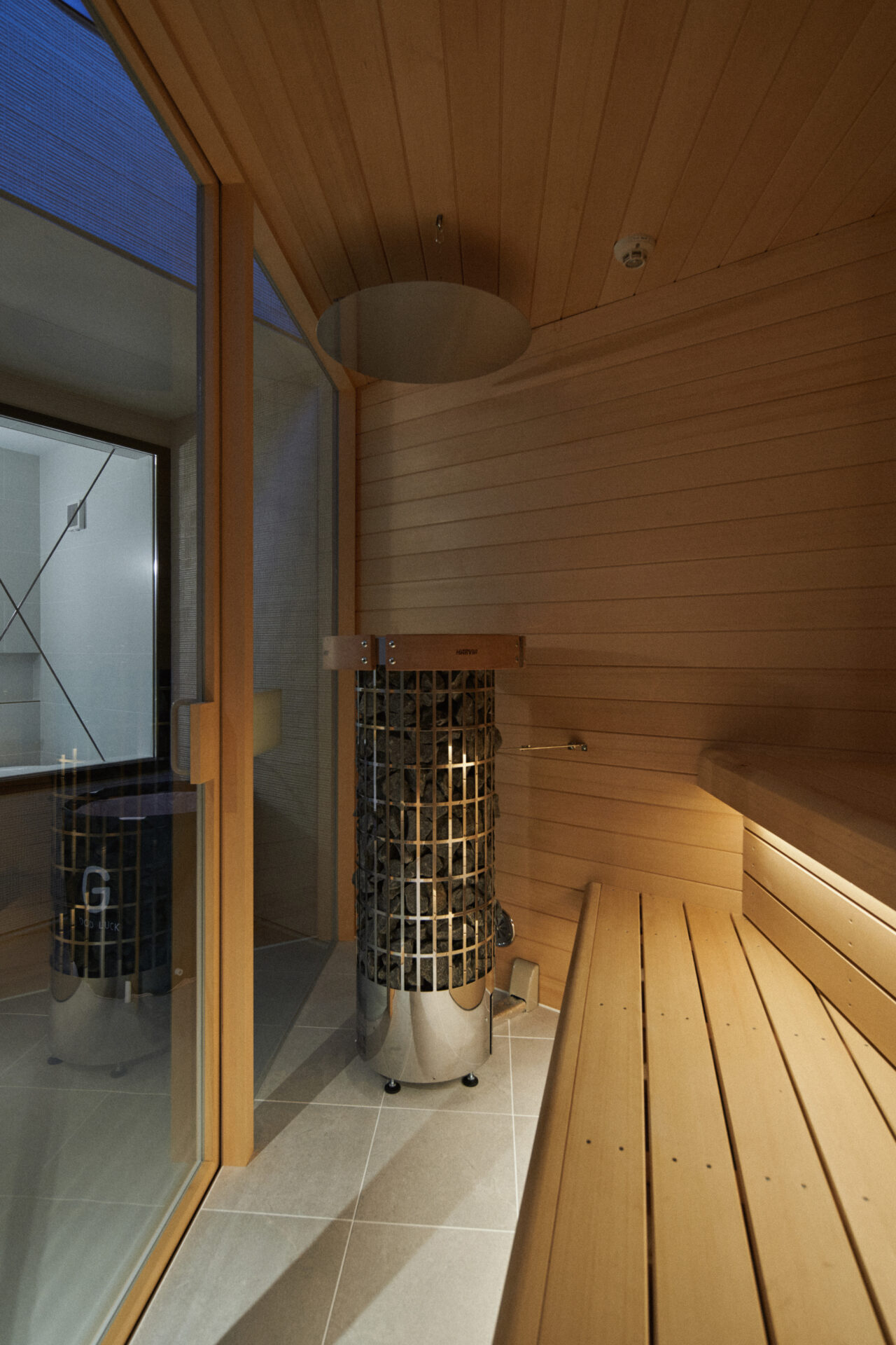オリジナルデザインで仕上げたサウナは、ヒバの香りにつつまれる癒やしの空間。